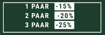 -15% auf 1 Paar | -20% auf 2 Paare | -25% auf 3 Paare (Rabatt gilt auf alle Paare)