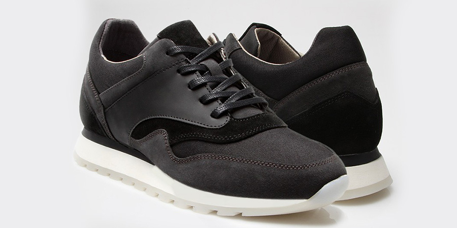The mix of geometric lines and curves gives the Arena its contemporary touch. The sneaker in its white and black version is made of a blend of three materials in a very subtle colour mix: two shades of grey and black or two shades of grey and white. A very simple sophistication that results in a sporty-chic sneaker that will go with all your outfits. The inner lining is made of sweat-wicking microfibre for comfort. The crowning glory is the completely invisible 7 cm elevator insole of the Arena model!