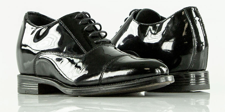 Upper in patent leather, microfiber interior, and synthetic sole.